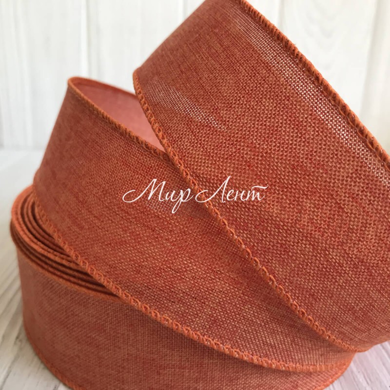 Котонова стрічка з дротяним кантом, 3,8 см, помаранчева, метр