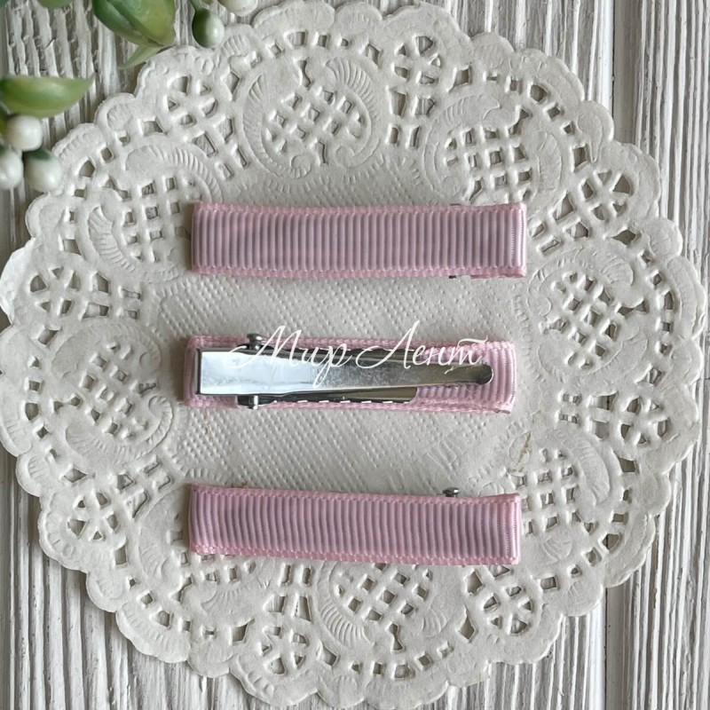 Крокодильчик металевий в репсовій стрічці, 5 см, світло-рожевий, упаковка 100 шт.