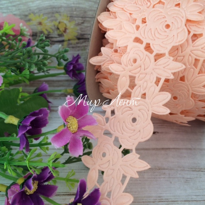 Мереживна стрічка трояндочка, 4,5 см, персик