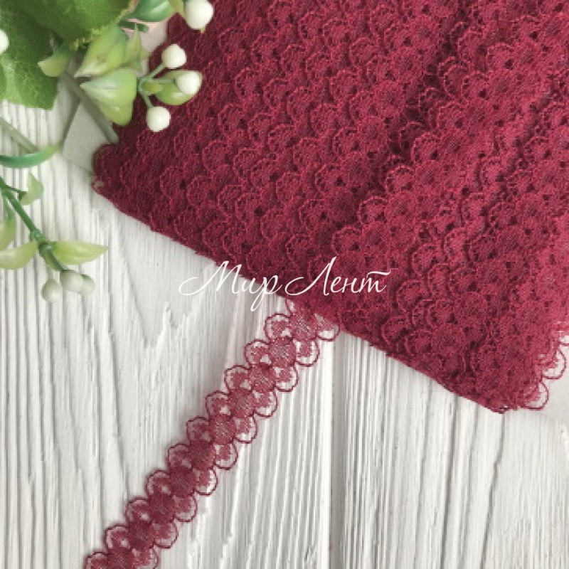 Мереживо Амелі (нестрейчеве), 1,5 см, бургунді, метр
