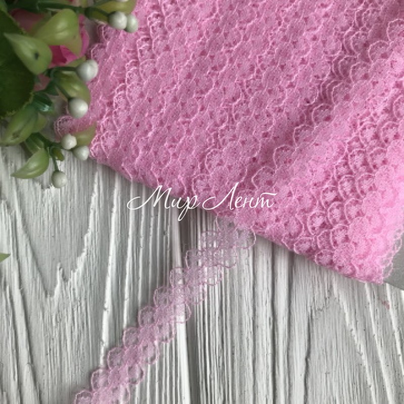 Мереживо Амелі (нестрейчеве), 1,5 см, рожевий, метр
