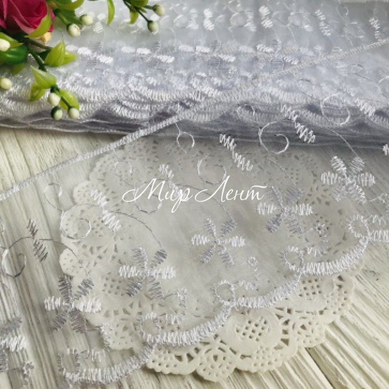 Мереживо органзове Беатріс, 8 см, біле, метр