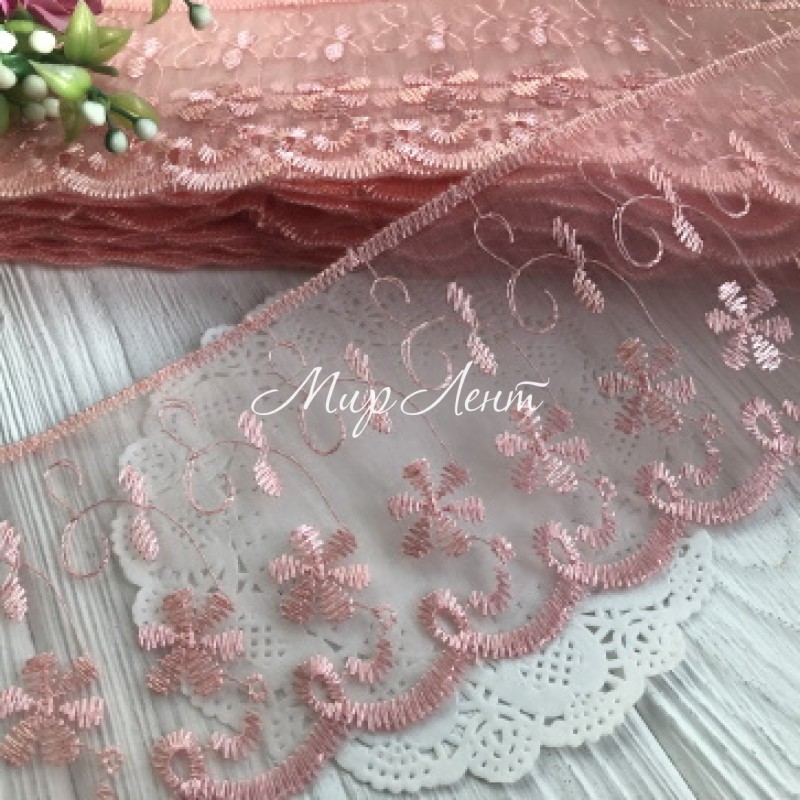 Мереживо органзове Беатріс, 8 см, персикове, метр