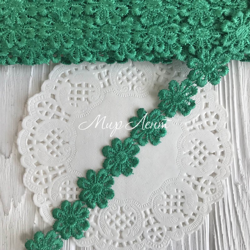 Мереживо відривна квіточка, 2,5 см, зелена, метр