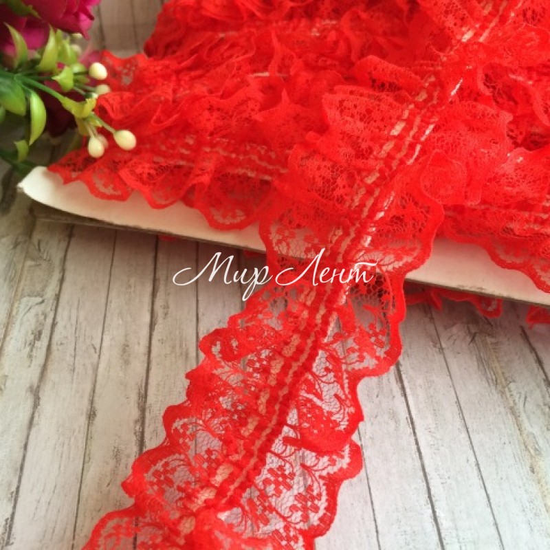 Кружево-рюша с резинкой, 4 см, красное
