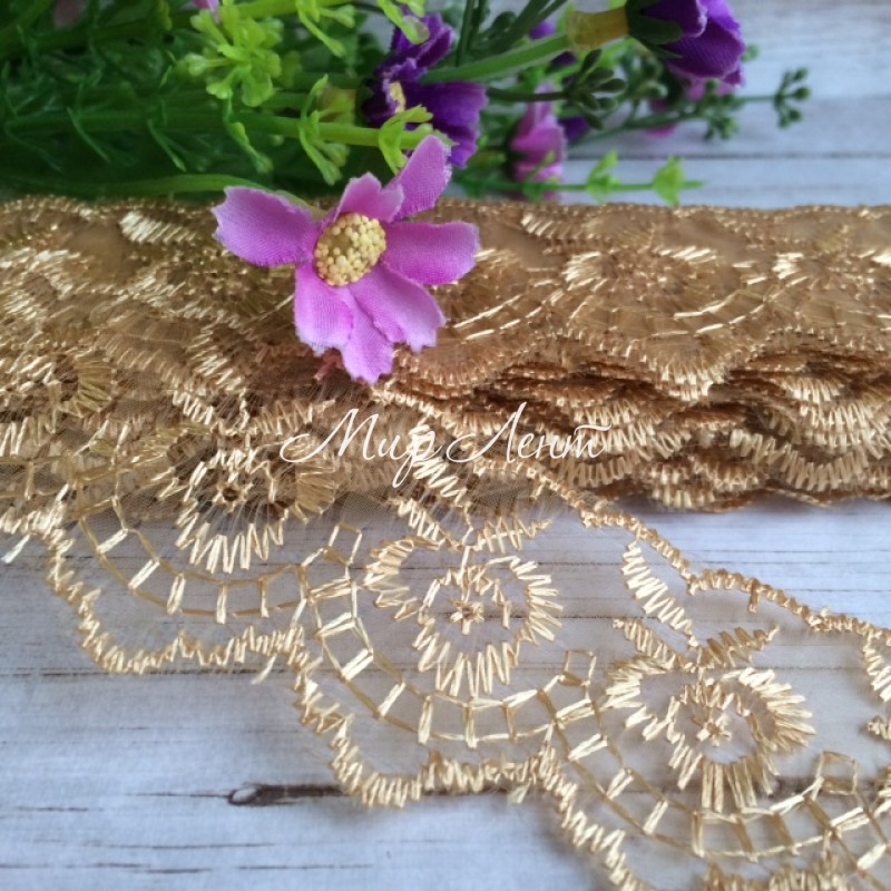 Репс 2,5 см люрекс (золото), айворі, за 1 м