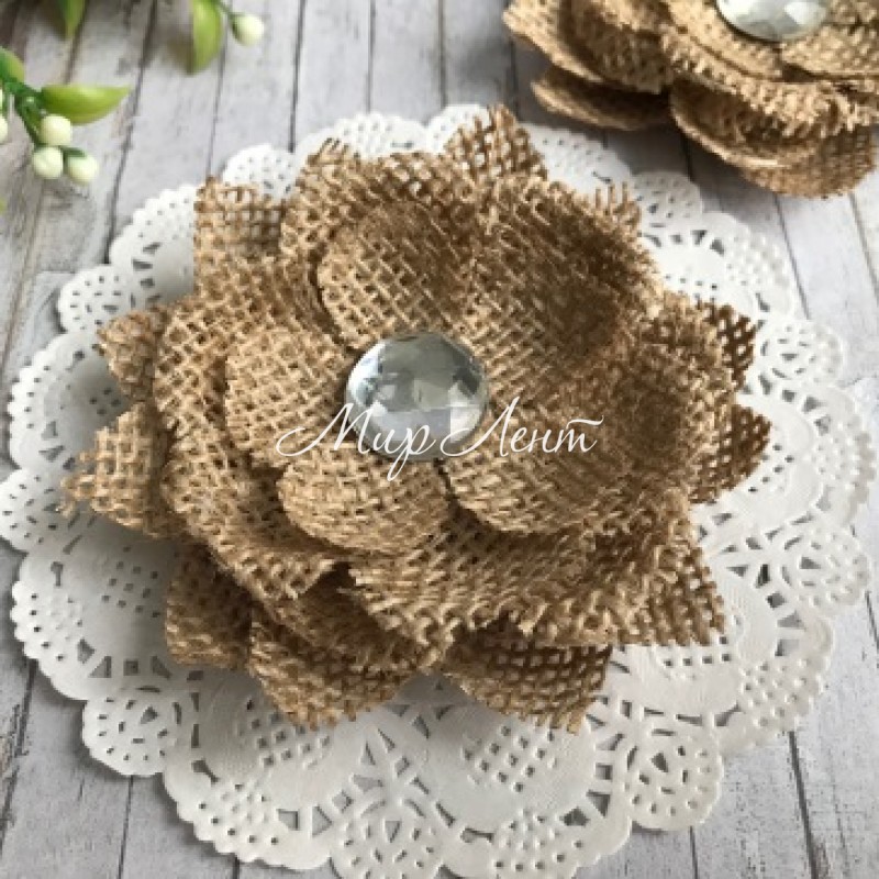 Квітка з мішковини з намистом, 9 см, шт.