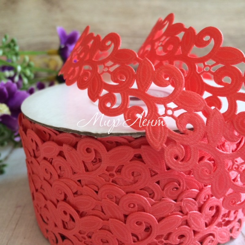 Атлас 2,5 см, орнамент, темно-фіолетовий