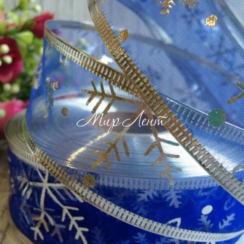 - Модель: Лента-органза новогодняя, 3,8 см, синяя