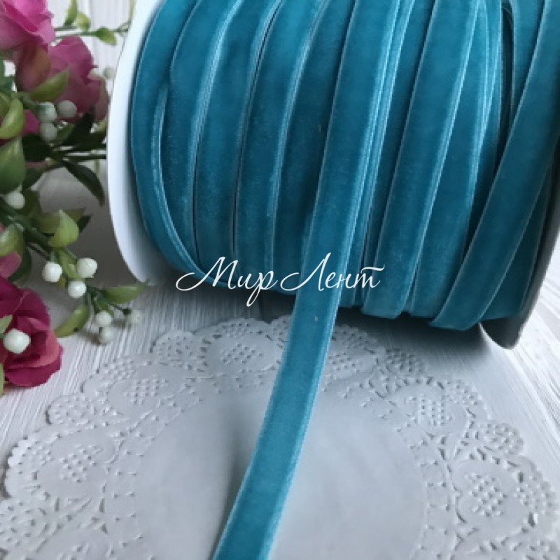 Стрічка велюр, 1 см, світло-бірюзовий, метр