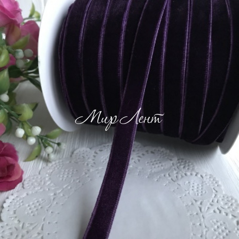 Стрічка велюр, 1 см, чорничний, метр