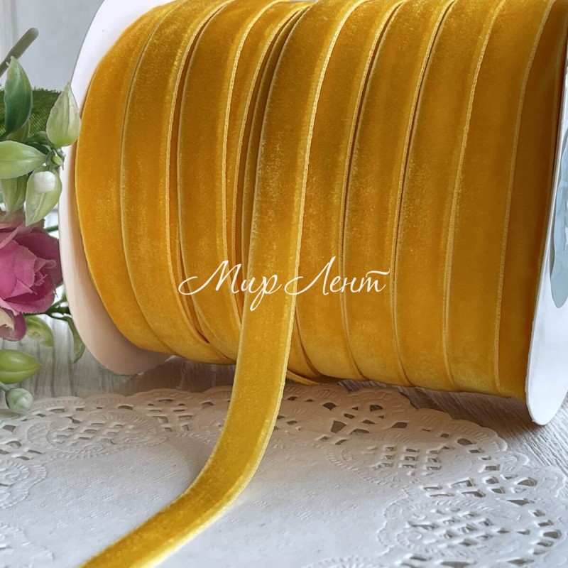 Стрічка велюр, 1 см, темно-жовтий, метр