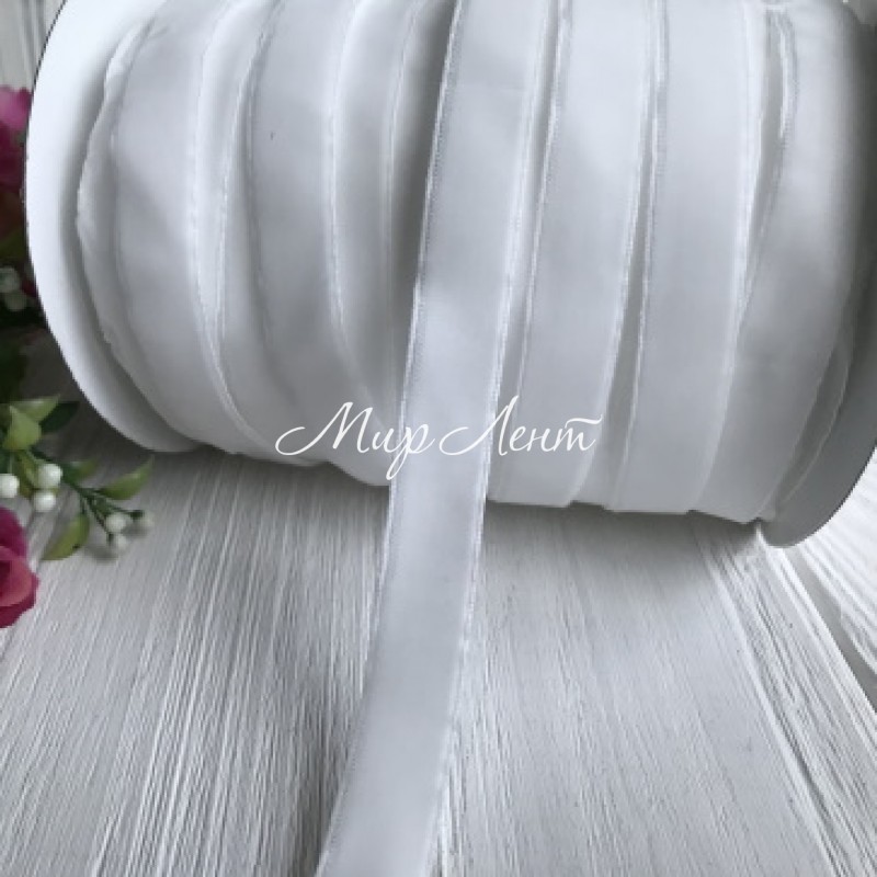Стрічка велюр, 1,5 см, білий, метр