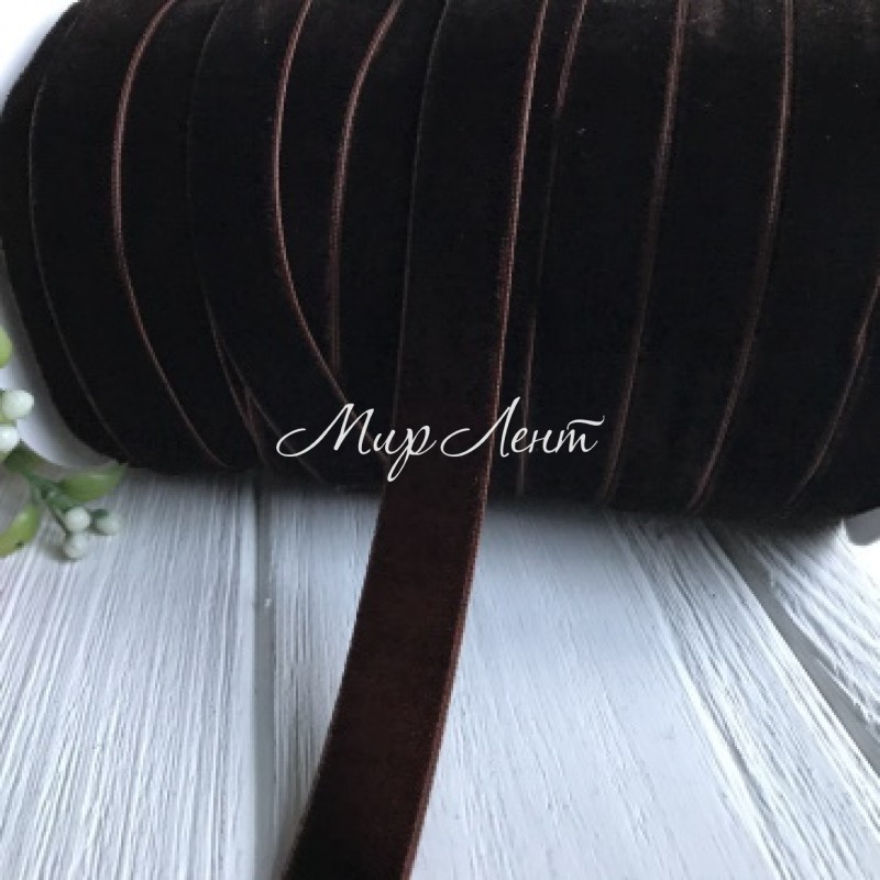Стрічка велюр, 1,5 см, шоколадний, метр