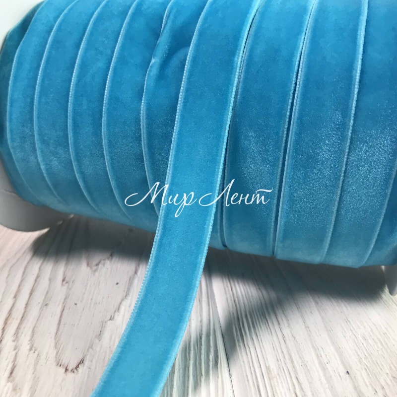 Стрічка велюр, 1,5 см, світло-бірюзовий, метр