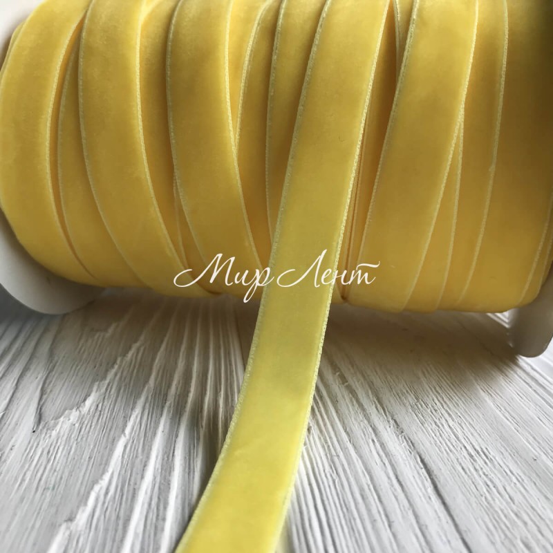 Стрічка велюр, 1,5 см, жовтий, метр