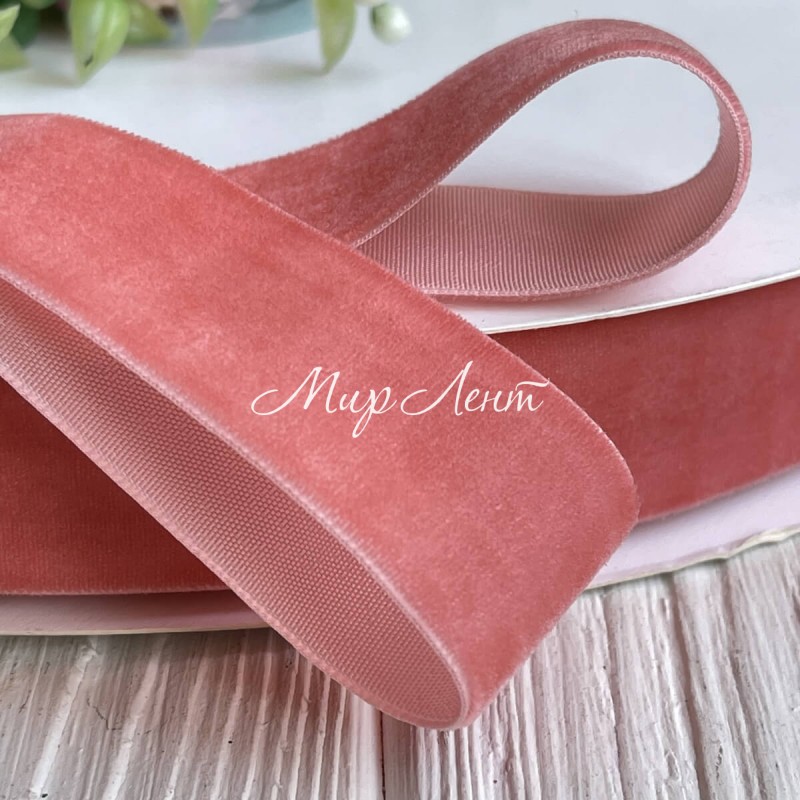 Стрічка велюр, 2,5 см, абрикосовий, метр
