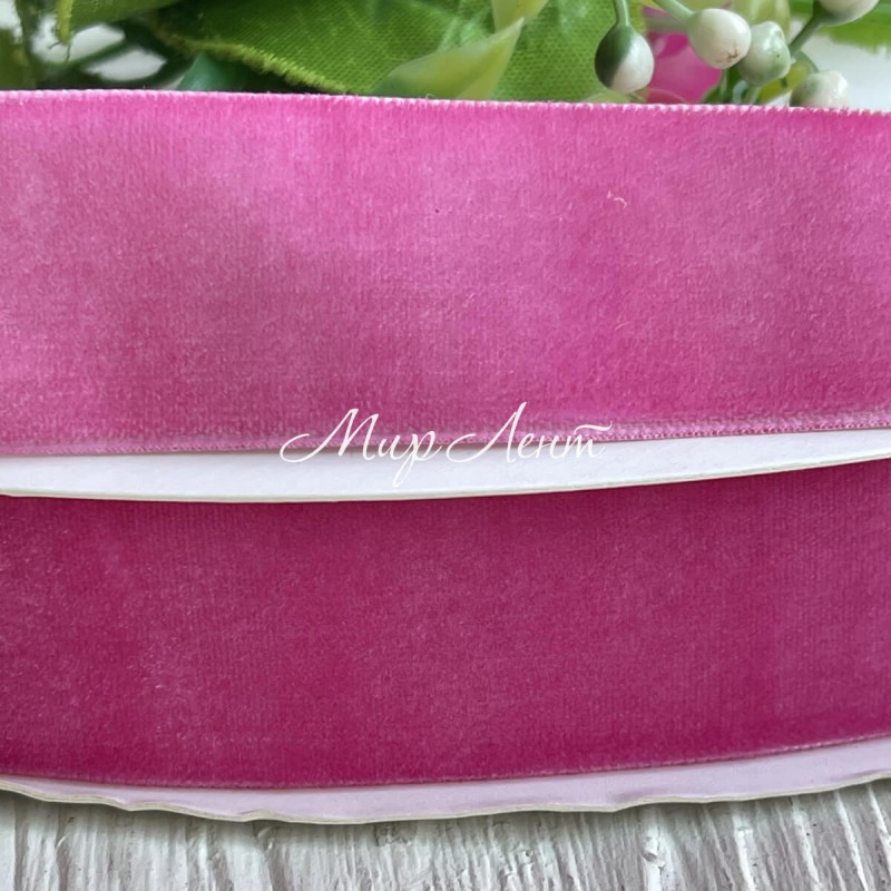 Стрічка велюр, 2,5 см, світло-малиновий, метр