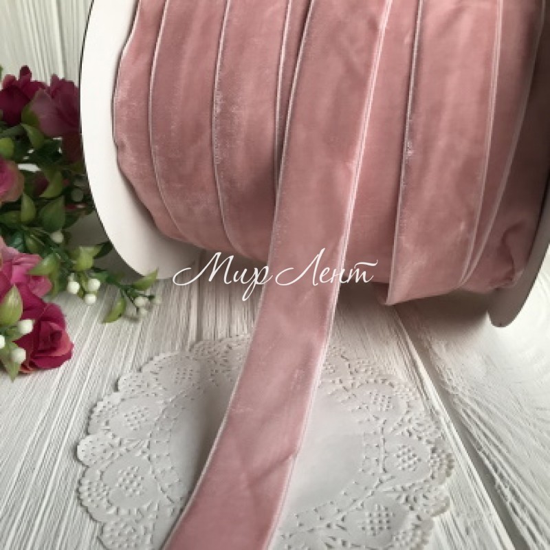 Стрічка велюр, 2,5 см, світло-пудровий, метр