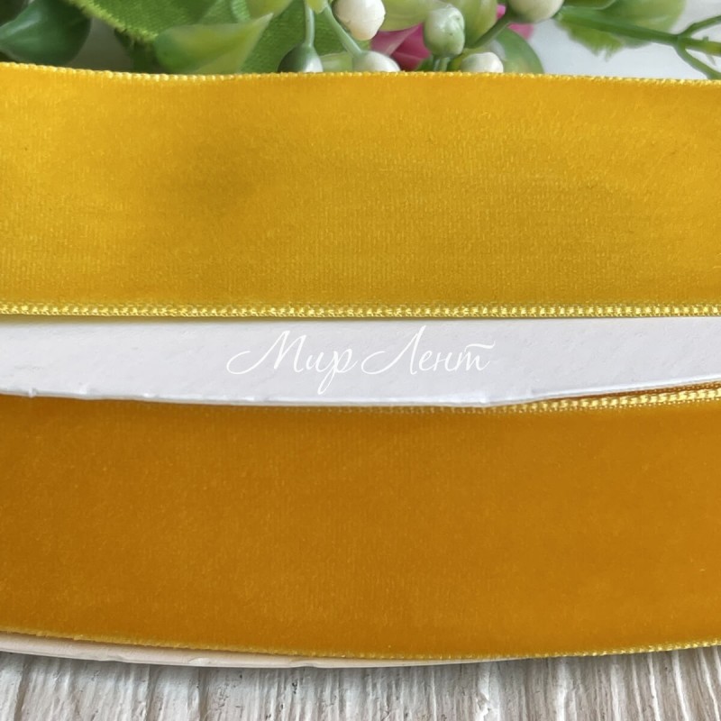 Стрічка велюр, 2,5 см, темно-жовтий, метр