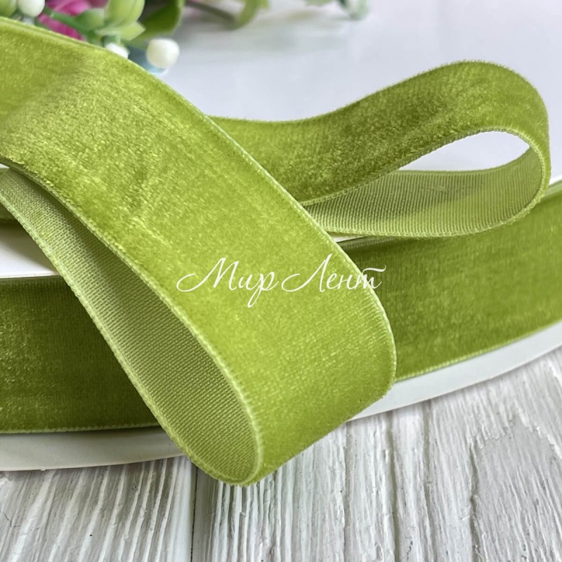Стрічка велюр, 4 см, оливковий, метр