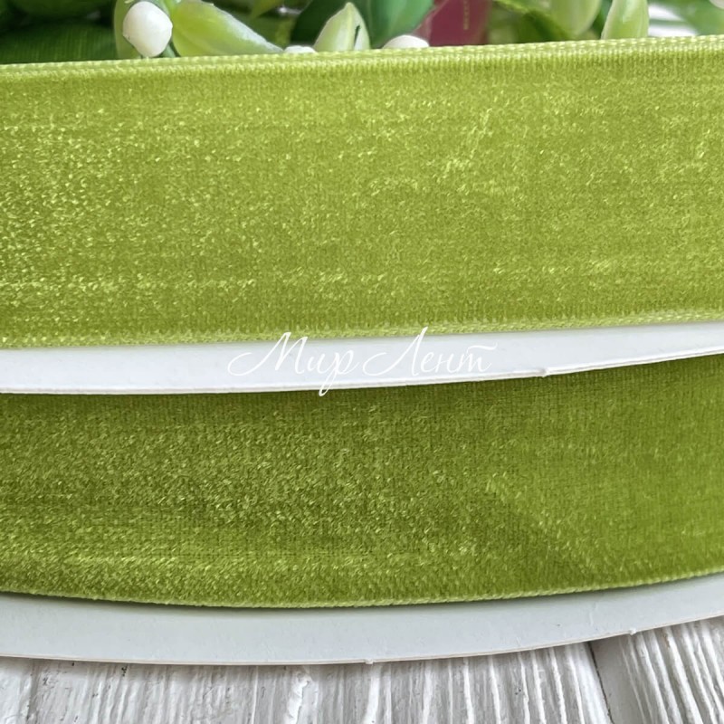 Стрічка велюр, 2,5 см, зелений, метр