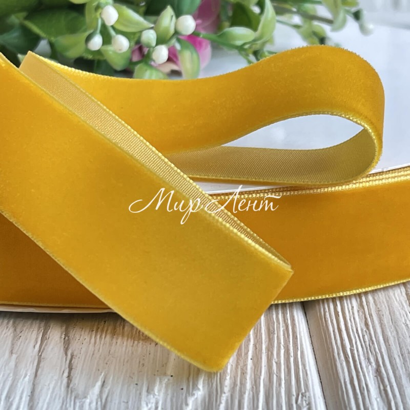 Стрічка велюр, 4 см, темно-жовтий, метр