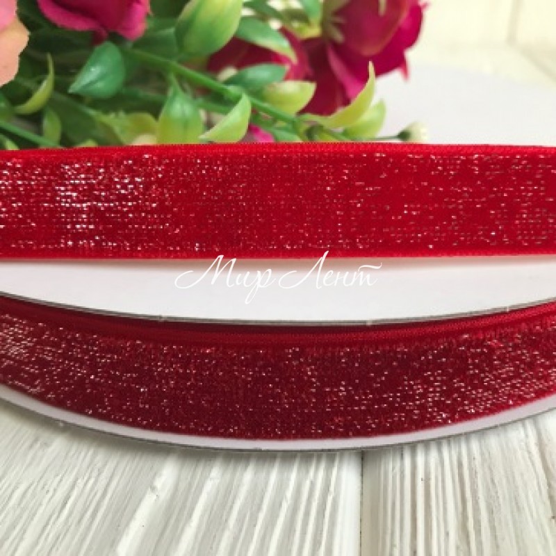 Стрічка велюр з люрексом, 1,5 см, червоний, метр