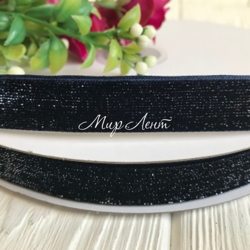 Стрічка велюр з люрексом, 1,5 см, сапфіровий, метр