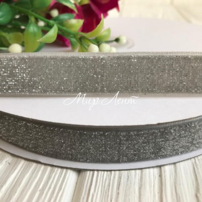 Стрічка велюр з люрексом, 1,5 см, срібло, метр