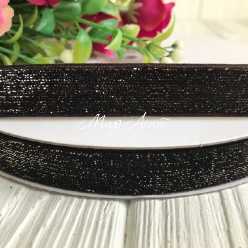 Стрічка велюр з люрексом, 1,5 см, шоколадний, метр
