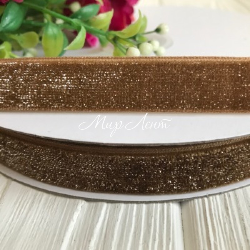 Стрічка велюр з люрексом, 1,5 см, темне золото, метр
