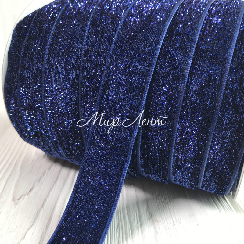 Стрічка велюр з люрексом, 2,5 см, сино-фіолетовий, метр