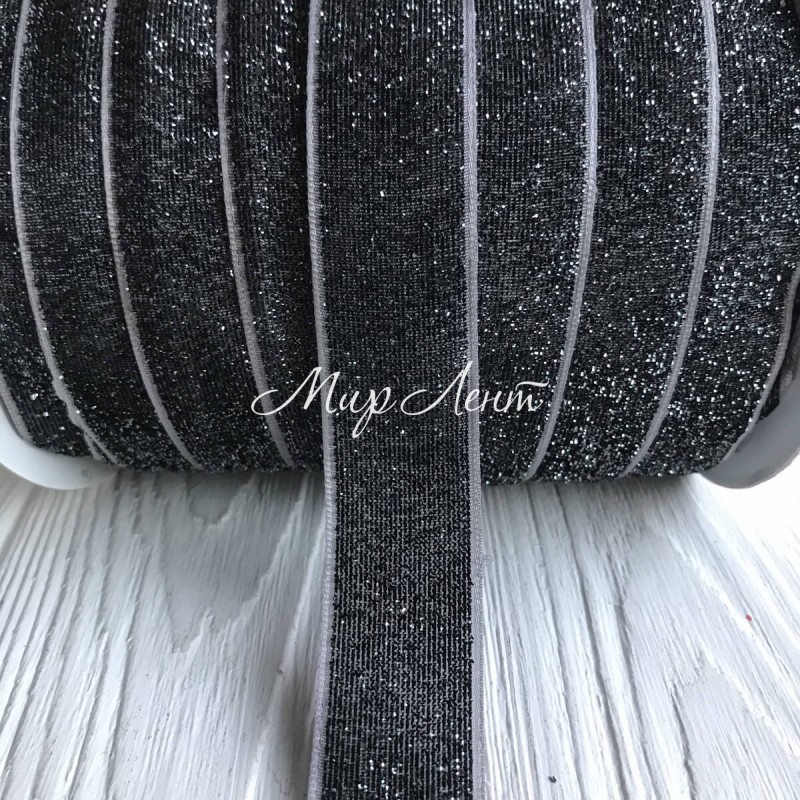 Стрічка велюр з люрексом, 2,5 см, графітовий, метр