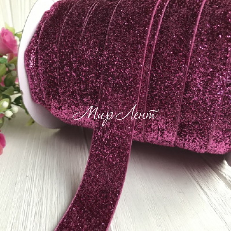 Стрічка велюр з люрексом, 2,5 см, малиновий, метр