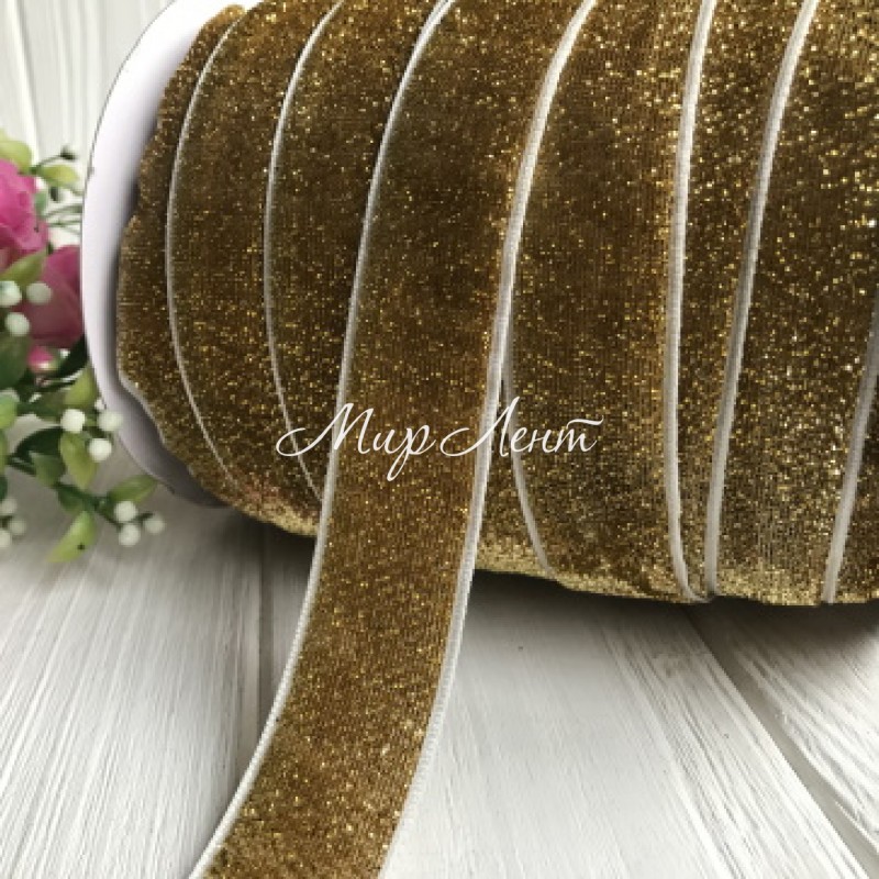 Стрічка велюр з люрексом, 2,5 см, золото, метр