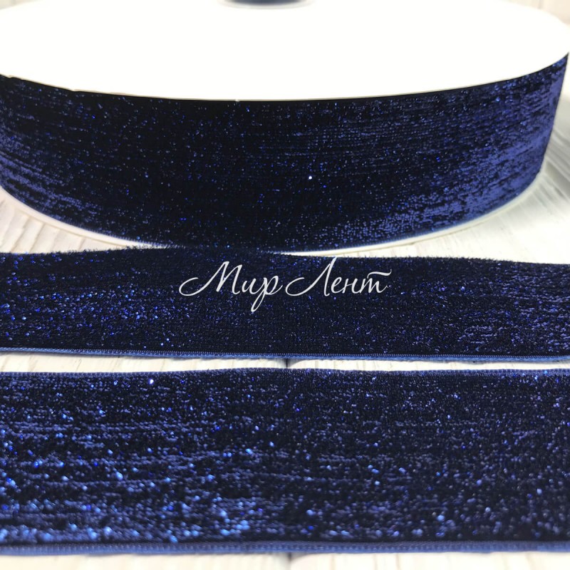 Стрічка велюр з люрексом, 4 см, синьо-фіолетовий, метр