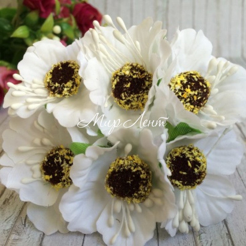 Мак, 4 см, білий, 6 квіточок у пучку, 1 пучок