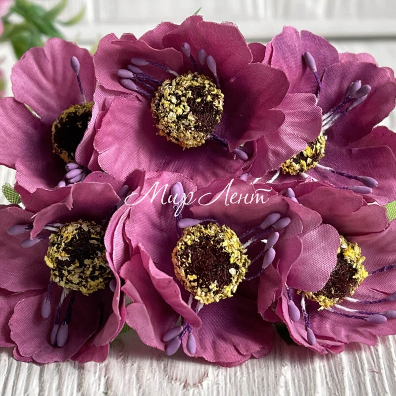 Мак, 4 см, малиновий, 6 квіточок у пучку, 1 пучок