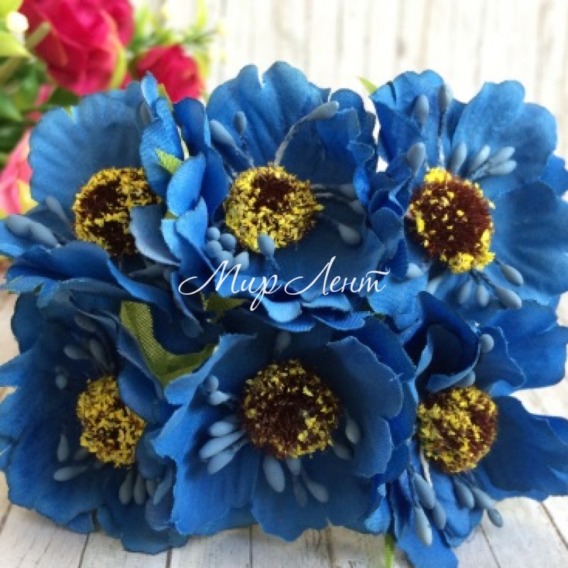 Мак, 4 см, синій, 6 квіточок у пучку, 1 пучок