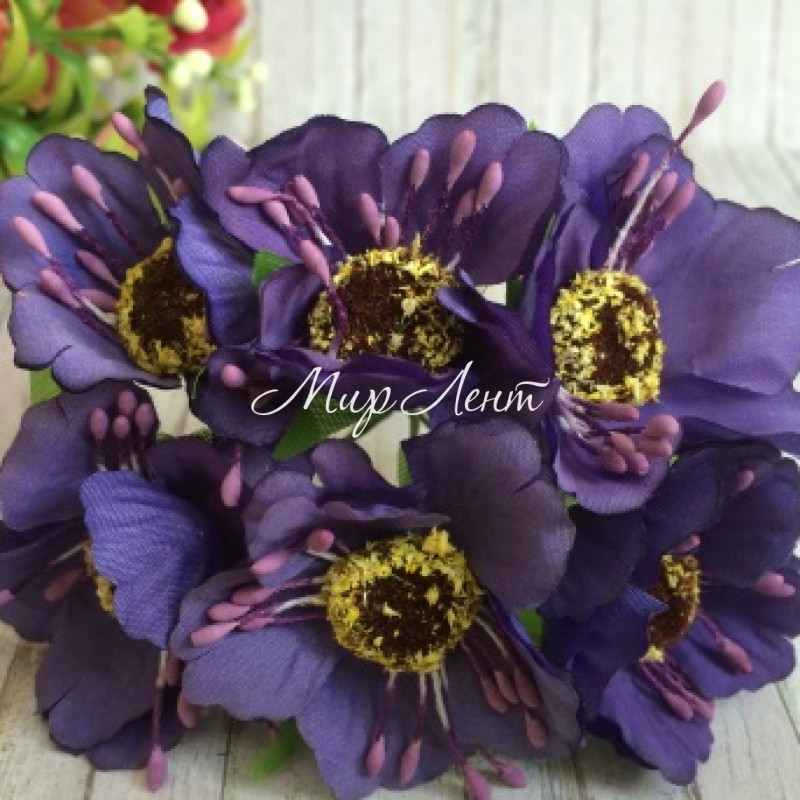 Мак, 4 см, темно-фіолетовий, 6 квіточок у пучку, 1 пучок