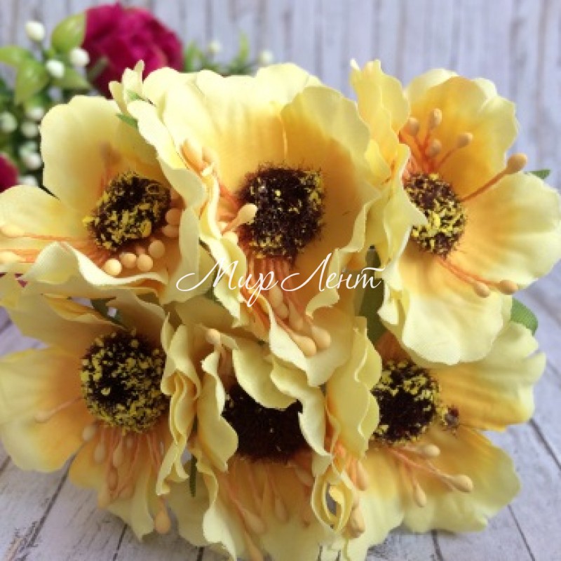 Мак, 4 см, жовтий, 6 квіточок у пучку, 1 пучок