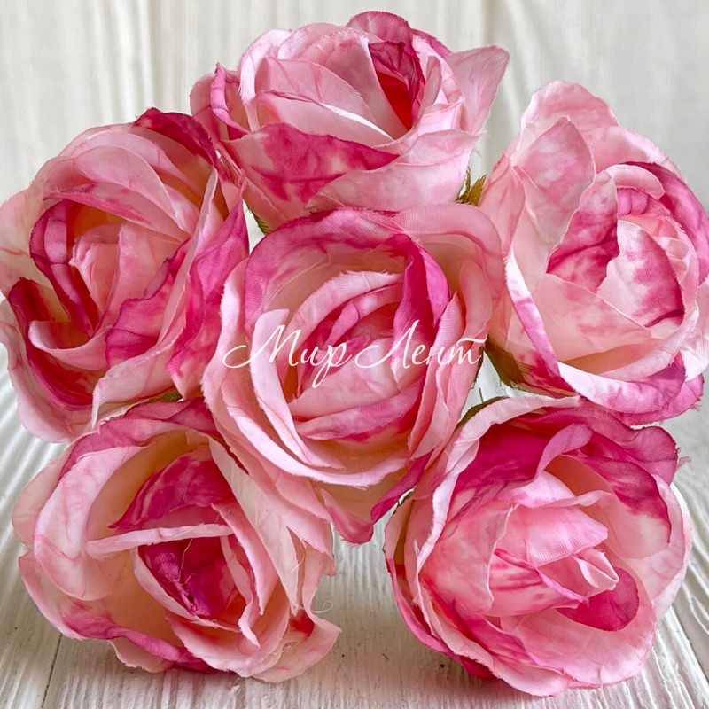 Мармурова троянда, 4,5 см, біло-малинова, пучок