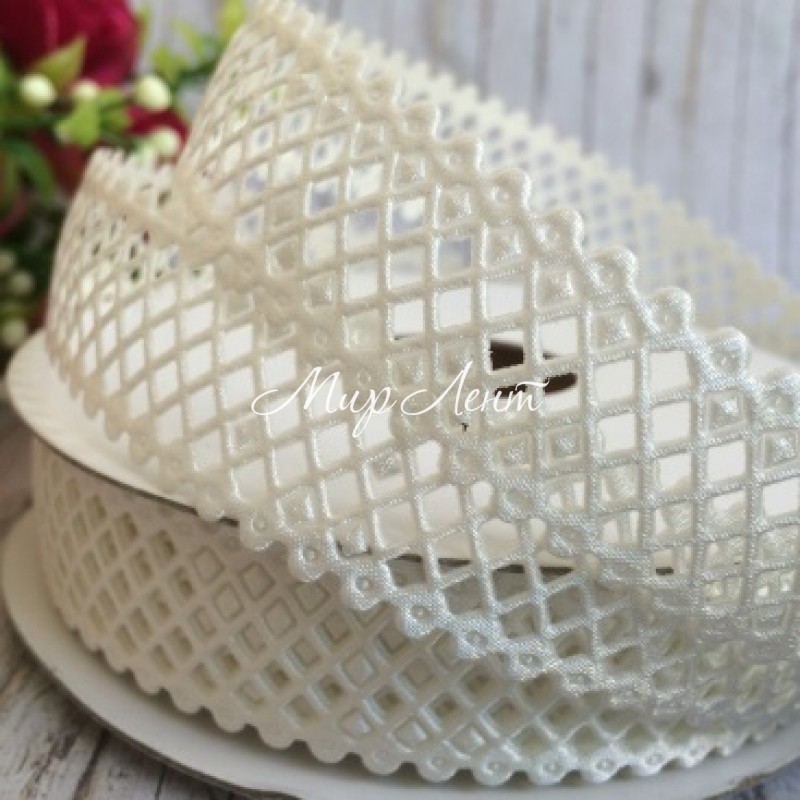 Мереживна стрічка сіточка, 2 см, молочний, метр