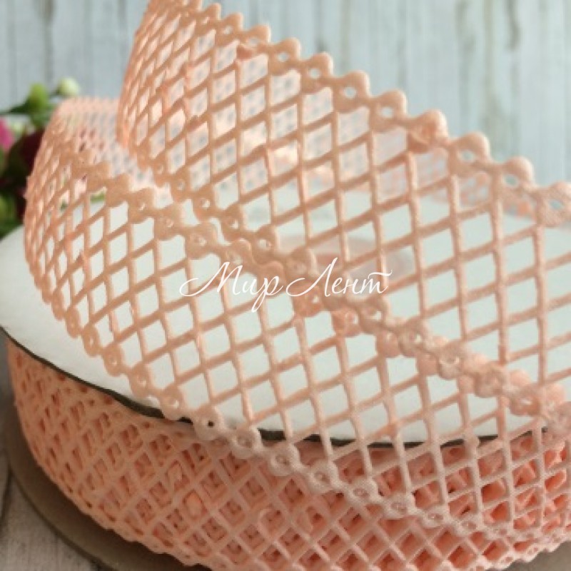 ᐉ Мереживна стрічка сіточка, 2 см, персиковий, метр