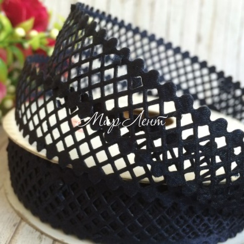 Мереживна стрічка сіточка, 2 см, сапфіровий, метр