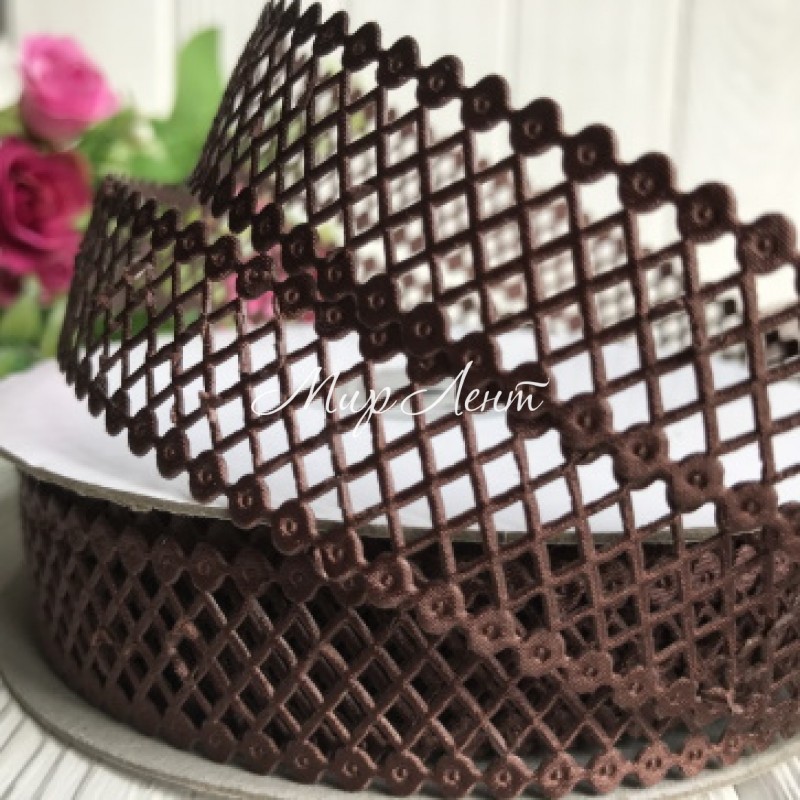 Мереживна стрічка сіточка, 2 см, шоколадний, метр