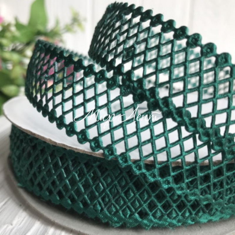 Мереживна стрічка сіточка, 2 см, темно-зелений, метр