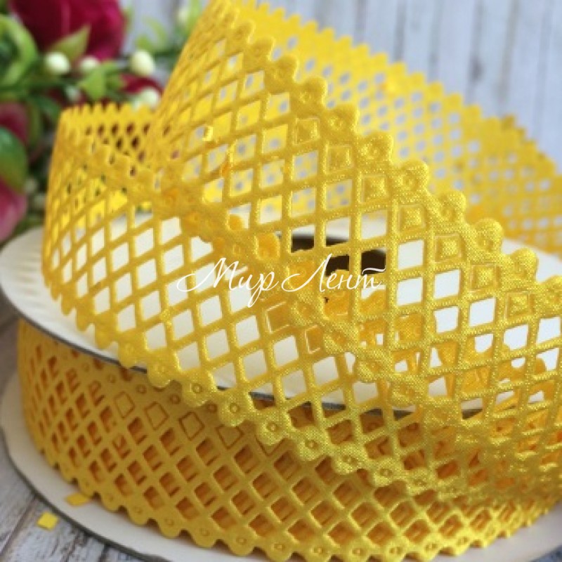 Мереживна стрічка сіточка, 2 см, темно-жовтий, метр