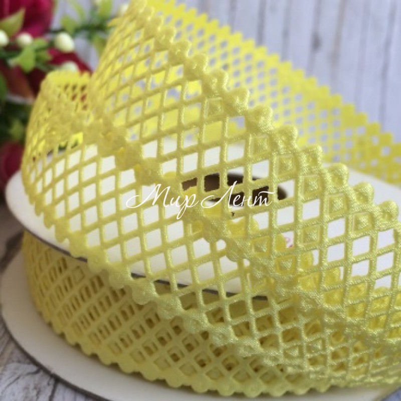 Мереживна стрічка сіточка, 2 см, жовтий, метр